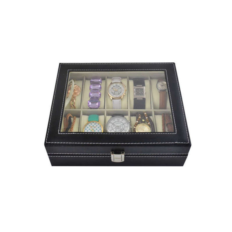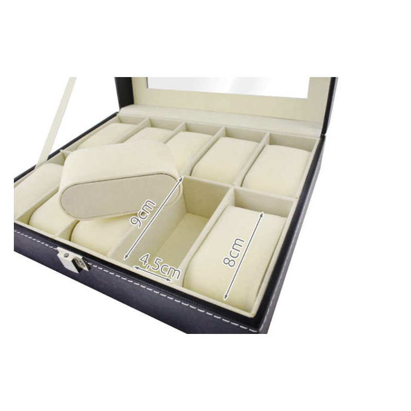 10 rekeszes karóra tároló doboz - óratartó szekrény rekeszekkel