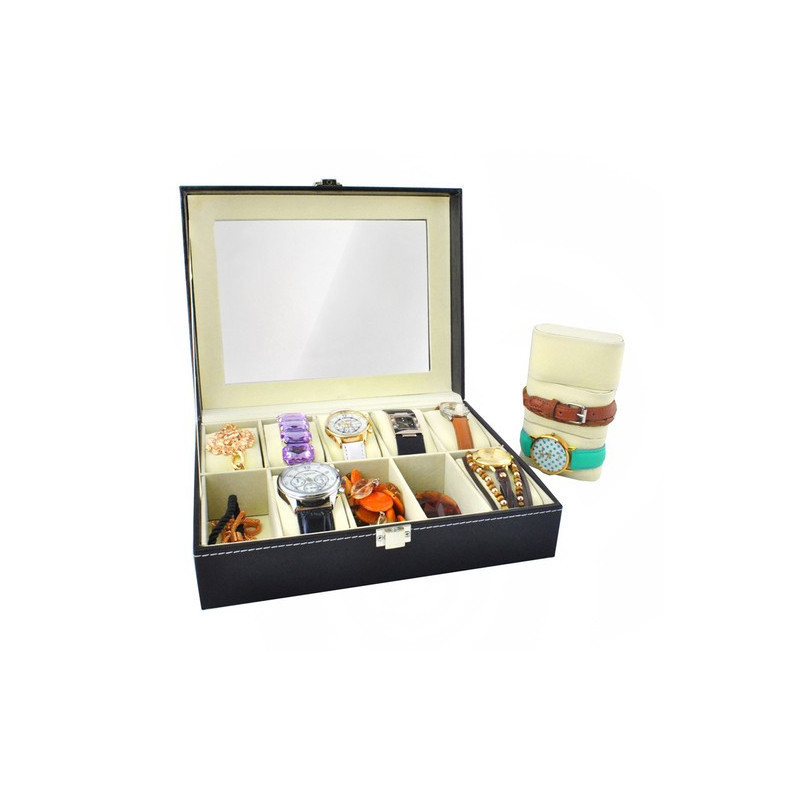 Ez a divatos és kifinomult óratartó doboz nem csupán az óráid, hanem karkötőid és más ékszereid számára is ideális helyet kínál! Gondos részletekkel készült, így garantáltan lenyűgözően mutat majd a polcodon, és gyönyörűen kiemeli a benne tárolt értékeidet.