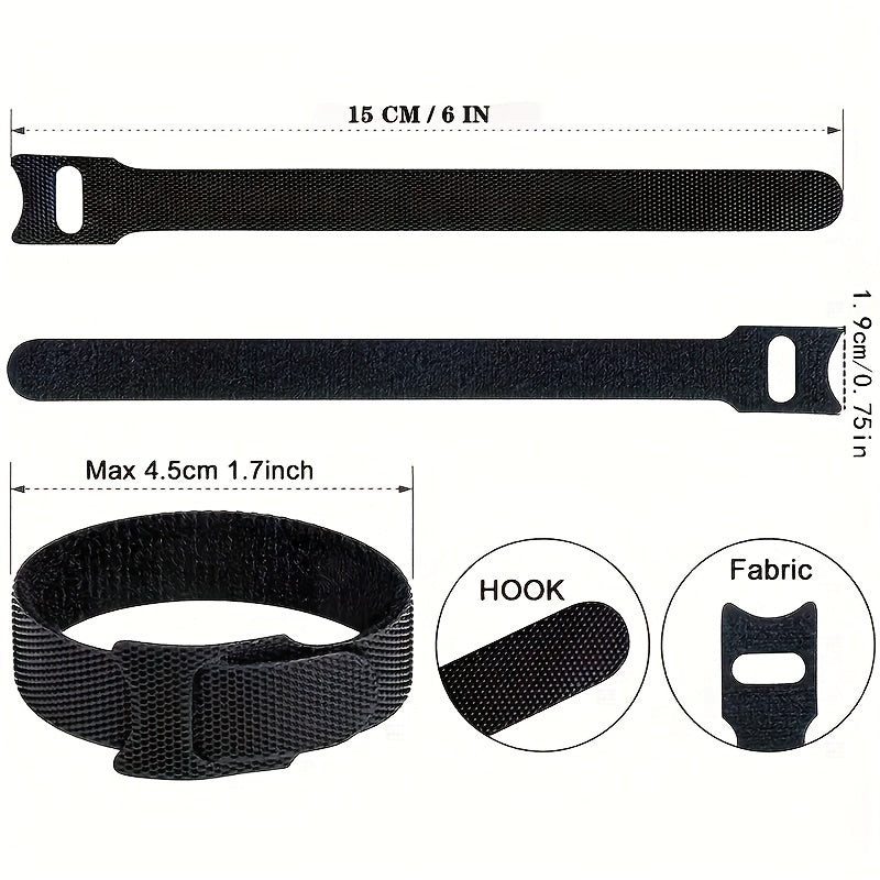 (Állíthatóság) A hevederek teljesen állíthatóak, így könnyedén igazíthatod őket a különböző kábelkötegek méretéhez.