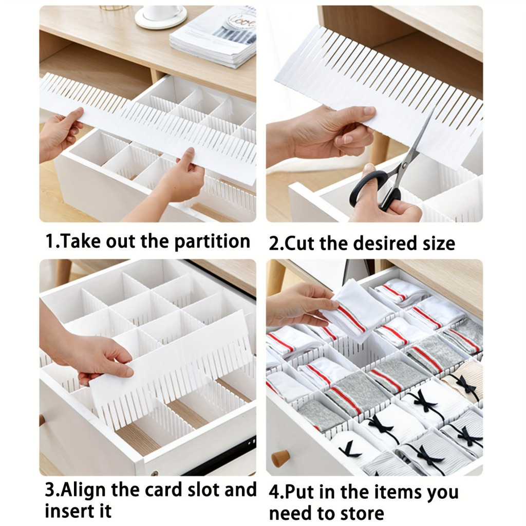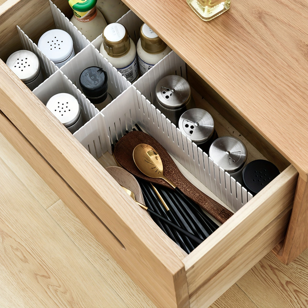 (Állíthatóság) Könnyedén testreszabható, így bármilyen méretű és formájú fiókhoz igazíthatod, hogy a lehető legjobban kihasználhasd a rendelkezésre álló helyet.