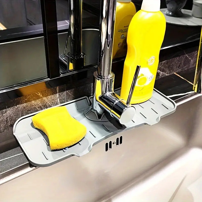 Helyezd el ezt a szilikon tartót a csap körül, amely hatékonyan elvezeti a fölösleges vizet, és emellett mosogatószer és szivacs tárolására is kiválóan alkalmas.