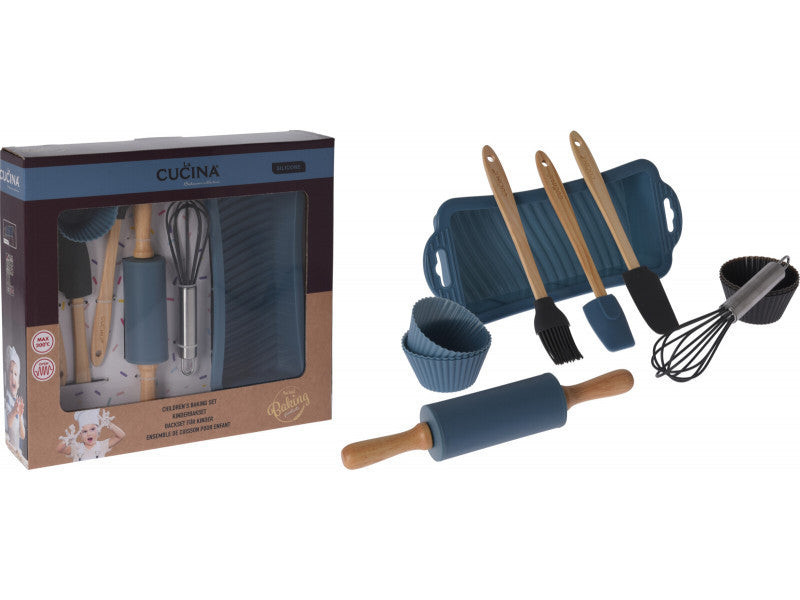 A készletben találhatsz egy szilikon tepsit, kettő féle spatulát, egy ecsetet, muffin formákat, habverőt és egy nyújtófát is. Mindegyik kellék elengedhetetlen a főzés és sütés közben, ezért szuper lehetőség most beszerezni egyben!