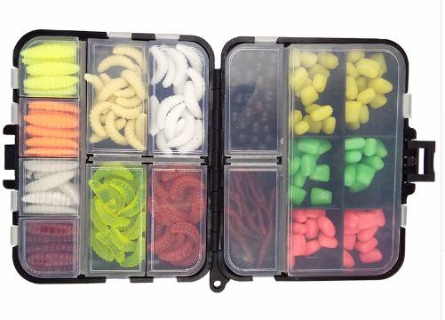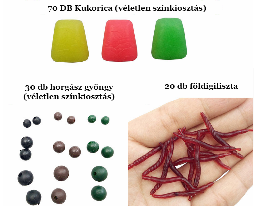 220 darabos lágy műcsali szett – 100 kukac, 70 kukorica, 20 földigiliszta, 30 gyöngy