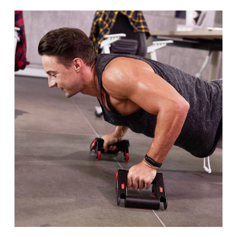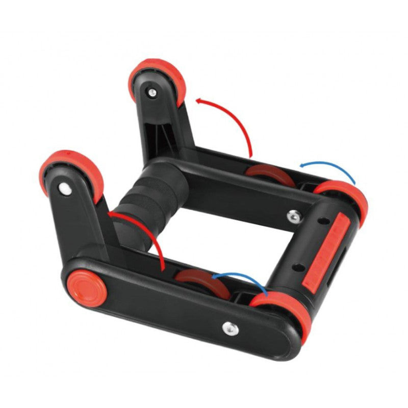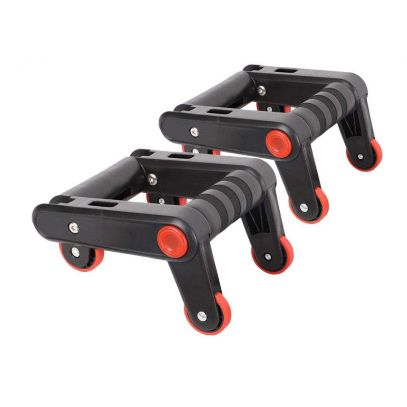 A görgők ideálisak a has-, váll- és mellizmok edzésére. Rehabilitációs és korrekciós gyakorlatokhoz is jól használhatóak. Az ergonomikus fogantyúk kényelmet biztosítanak a hosszú gyakorlatok során. Ezek a gyakorlatok kiválóan alkalmasak az általános erőnlét erősítésére. Nagyon könnyen használható. További előnyt jelent a két térdvédő, aminek köszönhetően anélkül edzhetsz, hogy félned kellene a térdkopástól. A praktikus kicsire illeszkedő fogantyúk kiválóan alkalmasak otthon fitnesz gyakorlatokhoz. A fogantyúk csúszásmentes szivaccsal vannak ellátva, amely megakadályozza a kezek elcsúszását. A fogantyúknak kettős célja van.