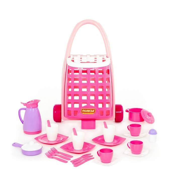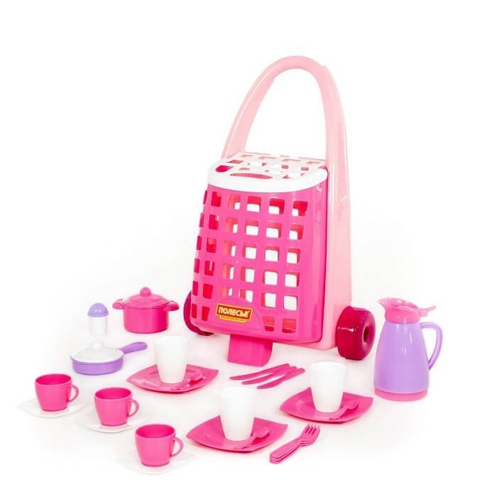 31 darabos játék étkészlet kiskocsival (rózsaszín)