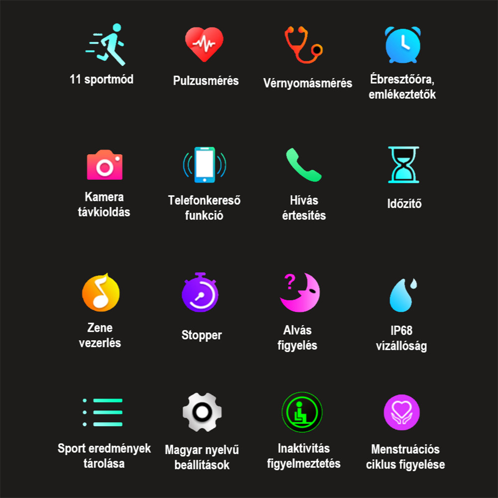 Amellett, hogy egészségedet is kordában tarthatod az okosóra segítségével, beállíthatod a hívások és beérkező üzenetek kijelzését, valamint az ébresztőórát is! A készüléken összesen 10 választható sportmód érhető el, ezek között könnyedén váltogathatsz, alkalmas lehet úszás közben is vízállóságának köszönhetően!