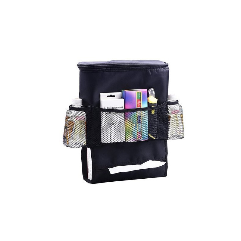 Szuper praktikus autós ülés rendező, ami egy hűtőtáskával van felszerelve, és azzal a céllal készült, hogy az első autós ülések hátuljára illeszkedjen. Ideális azért, hogy rendet tarts az autódban, tökéletes hely a térképek, italok, ételek, tollak, gyerekjátékok és különféle apró dolgok tárolására.
