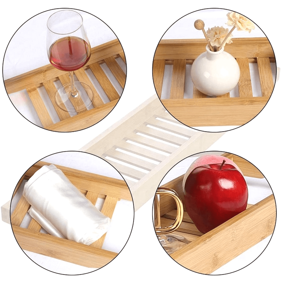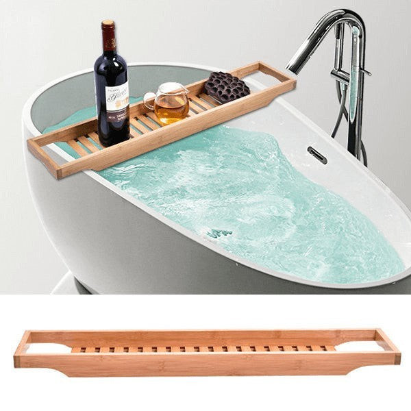 A bambusz tálca könnyed, stabil, így szinte bármit rátehetsz, nem fog leborulni róla. A használata roppant egyszerű, csak tedd a kád szélére és már kész is. Pakolj a tálcára akár ételt, italt, vagy kozmetikai szereket, a termék stabilan megtartja őket. A bordázott kialakítása megakadályozza, hogy a víz felgyülemjen.