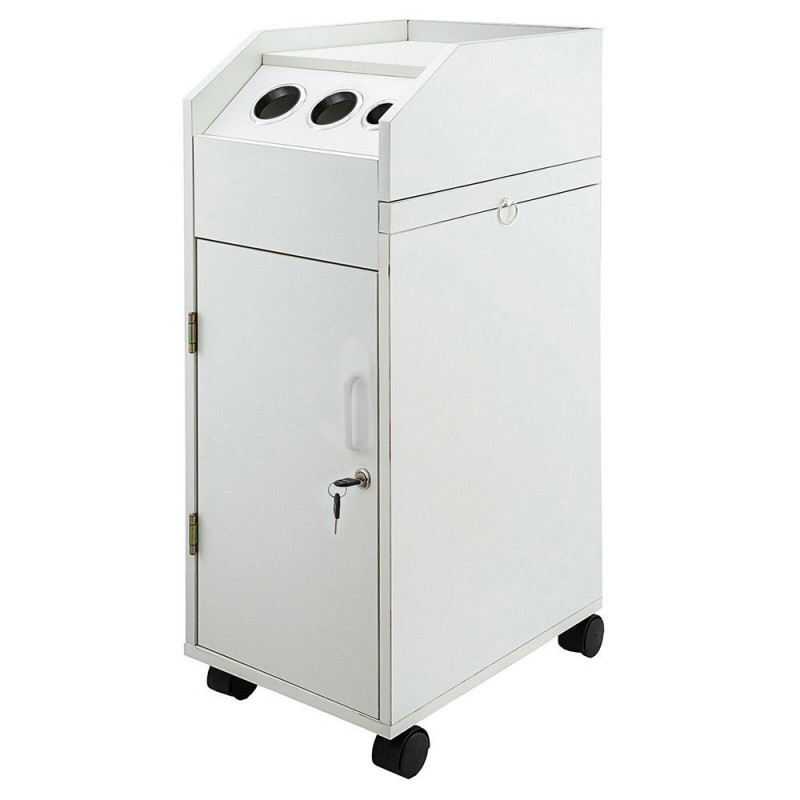 A beauty zárható eszközkocsi szinte elengedhetetlen kelléke a kozmatikai, fodrász és egyéb szépség, illetve egészségápolási szalonok berendezésének. Kerekeinek köszönhetően könnyen mozgatható, 4 tároló fiókja egy mozdulattal kivehető, és visszahelyezhető. Kihúzható oldalsó tálcája tároló elemként szolgál amikor szükség van rá.