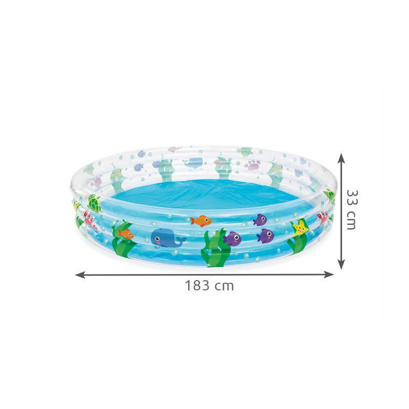 A medence három különálló, színes gyűrűből áll, amelyek mindegyike külön-külön felfújható. Ez nem csak színesebbé teszi a medencét, de stabilabbá is. Ráadásul nem kell mindhárom gyűrűt felfújni ahhoz, hogy a kicsik biztonságosan játszhassanak benne.