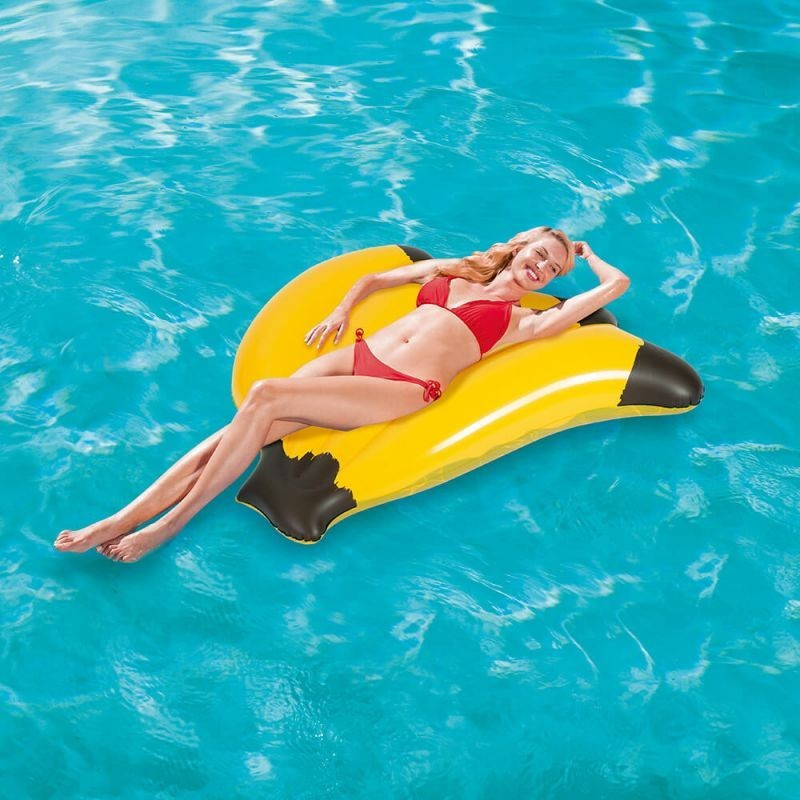 Válaszd banán alakú felfújható matracunkat, mely ideális strandra, tópartra vagy az otthoni medence mellé. Mintájának köszönhetően garantáltan a figyelem középpontjába kerülsz.