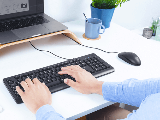 A csomagban található billentyűzet kiosztása QWERTY, amire numpad is került. Állítható magassággal rendelkezik, az alján található állító segítségével megemelheted a kényelmesebb használat érdekében. Hosszú kábele által nem kell nagyon közel ülnöd a gépedhez és a monitorodhoz, megtalálhatod a számodra megfelelő távolságot. Az egér ergonomikusan ki lett alakítva úgy, hogy a jobb és a balkézbe is tökéletesen illeszkedjen.