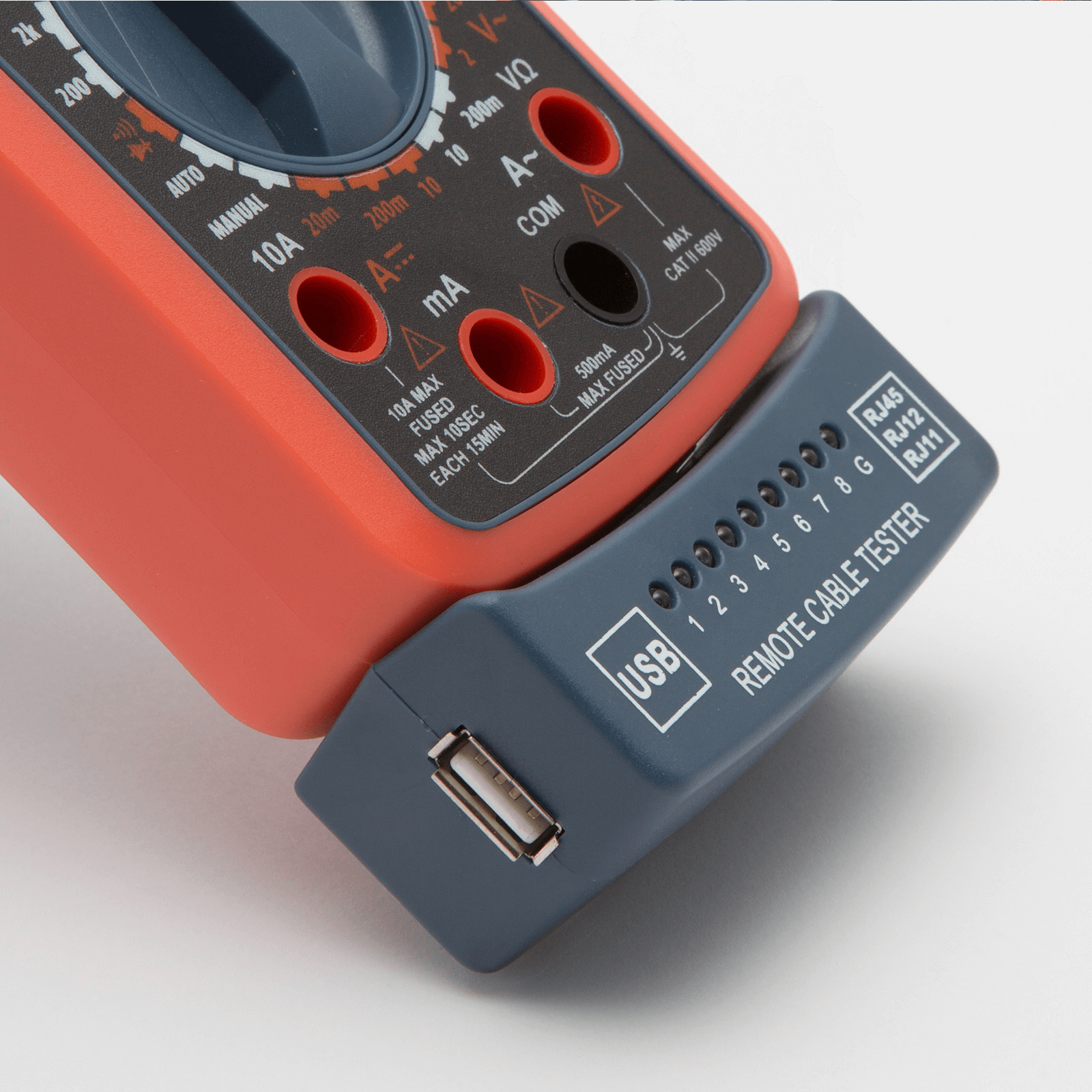 Ez a 2 az 1-ben műszer minden általános multiméteri funkcióval el lett látva, amit még kábeltesztelő egységgel is kibővítettek. Használható dióda és folytonossági teszthez, sőt az adatokat is tárolja. A kontroll egysége levehető és ezután szabadon hordozható. Használható a termék RJ11, RJ12, RJ45 és USB vezetékek teszteléséhez. A multiméter háttérvilágítással lett ellátva, így akár a sötétben, vagy a fényszegény helyeken is könnyedén használható, és még hangjelzést is ad ki a mérésnél. A termék elemmel működik, ami megtalálható a csomagban (9V IEC 6F22).
