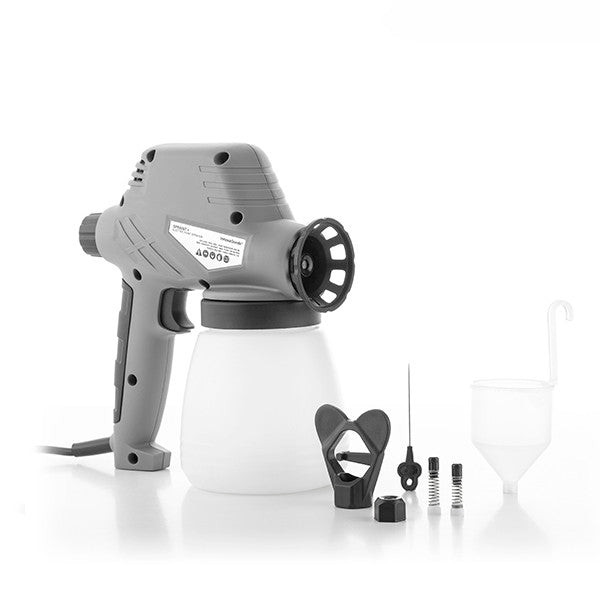 Az elektromos szivattyú biztosítja az állandó nyomást és a festék akadálytalan és egyenletes kiáramlását. Nem csak festékek, hanem lakkok, alapozók használatához is alkalmas. A festékszóró pisztoly végét vízszintes és függőleges irányba is állíthatjuk, attól függően, hogy milyen felületet festünk vele.