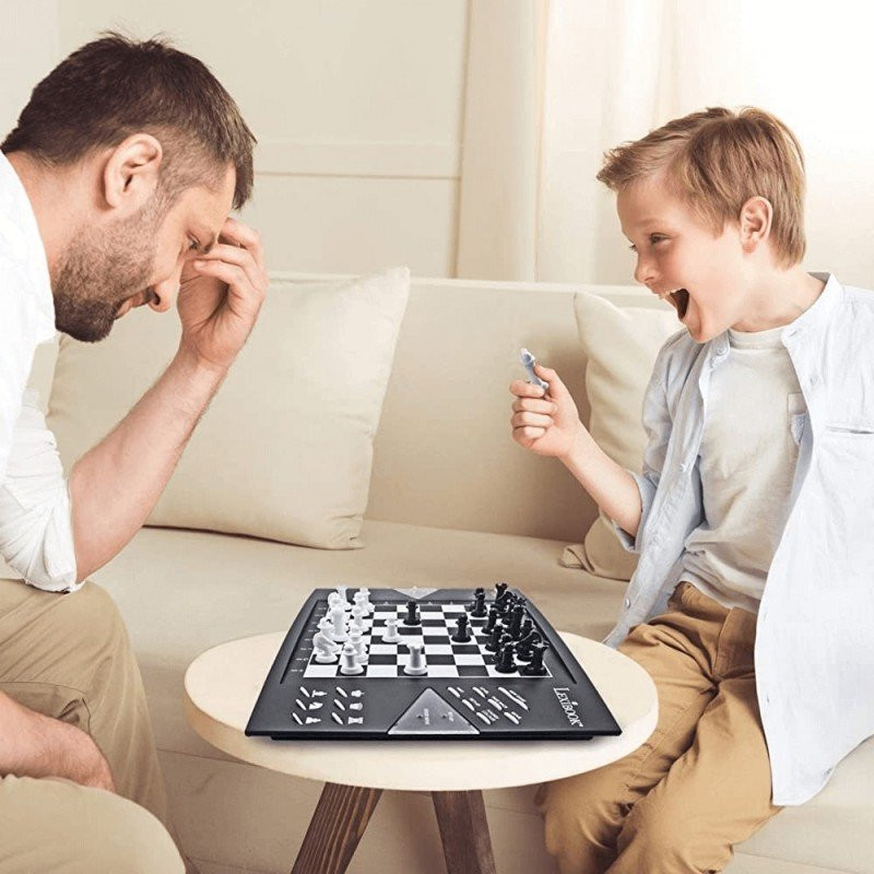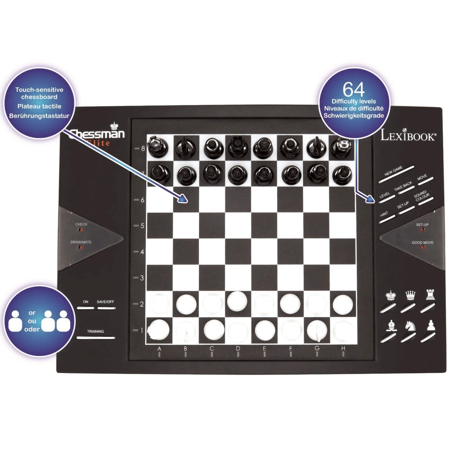 Ez az elektronikus sakktábla egy érintésérzékeny elektronikus számítógép, amely ideális a játék megtanulására vagy a tudásod fejlesztésére! A 64 játékszinttel a játék alkalmazkodik a képességeidhez, és végigvezeti az utadat a fejlődésben. Ez egy olyan komplex sakkjáték, amely az ELO 1800 rendszert használja a játékod értékelésére. A számítógép képes megtanulni a mozdulatokat az azokat megjelenítő 16 LED-diódának és az érintésérzékeny billentyűzetnek köszönhetően. Lehetővé teszi, hogy két másik emberrel vagy a számítógép ellen játssz zökkenőmentesen.