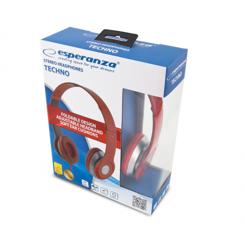 Az Esperanza Techno sztereó fejhallgató piros színben tökéletes választás, amellyel kiváló hangzással hallgathatod kedvenc zenéidet.