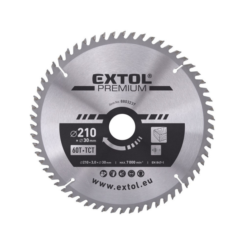 EXTOL PREMIUM körfűrészlap, keményfémlapkás, 160×20mm(lyuk átm), T24; 2,8mm lapkaszélesség, max. 9000 ford/perc
