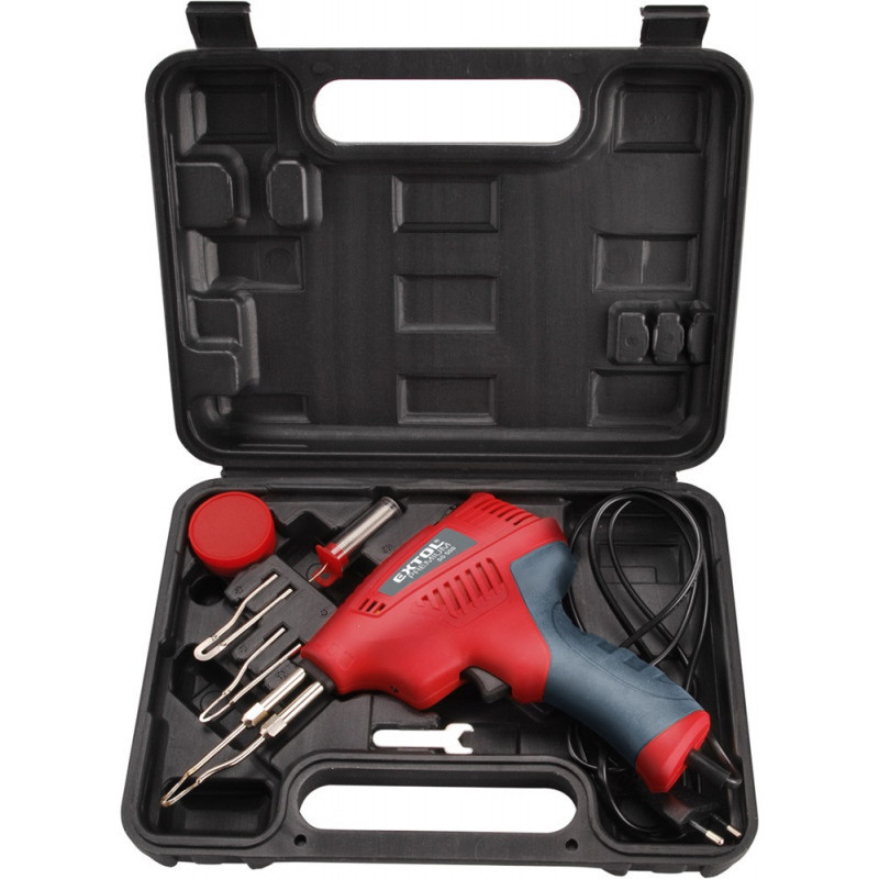 EXTOL PRMIUM forrasztópisztoly 200W, 3 funkciós: forrasztó, polifoam vágó, fanyag gravírozó, szabályozható hőfok, műanyag koffer