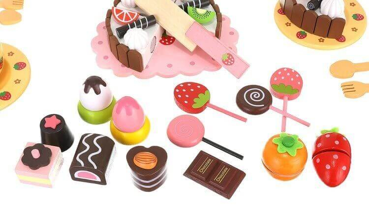 Ez a készlet mindent tartalmaz, ami ehhez szükséges, hisz sok édességet rejt, melyet tépőzárasak, így az evőeszközökkel könnyedén szét lehet vágni őket. Ez segíti a gyermekek szem-kéz koordinációját, illetve segít elsajátítani az étkezési illemeket is. A játék közben fejlődik a kézügyessége, a motorikus készségei, és megtanul logikusan gondolkodni. Az elegendő édességből még a plüss macinak, vagy a játékbabáknak is jut.