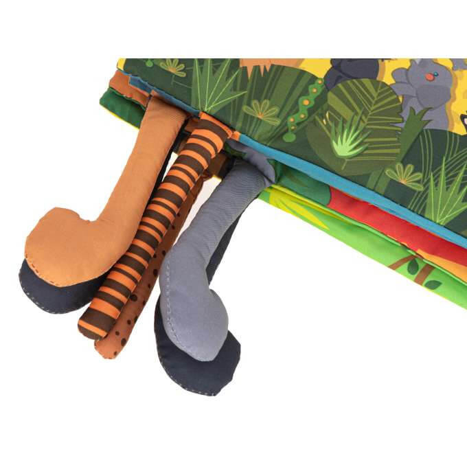 Ez a puha bébi könyv segít, hogy gyermeked közelről megismerhesse az állatokat megsimogatva őket. A könyv csodásan illusztrált vadállatok képeit rejti magában kisgyermekek számára. A tapintós könyv nagyszerű minden kisgyermeknek, akik szeretnék felfedezni a körülöttük rejlő világot. A textil könyvvel való játék fejleszti a gyermekek tapintását, érzékelését. A könyvben található susogós oldal, kiálló farok, és sípoló is.