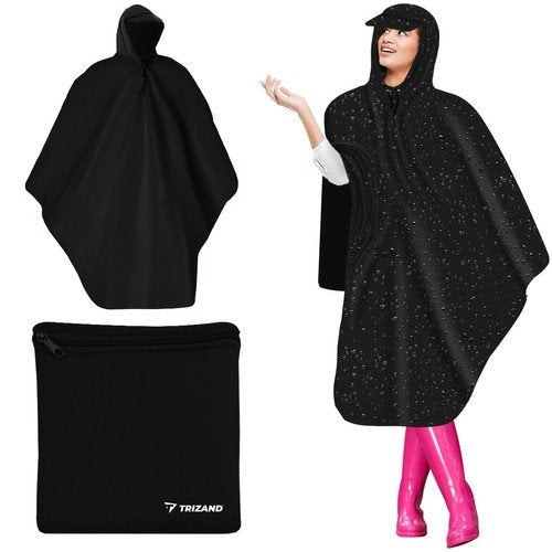 Fekete esőkabát, vízálló poncsó kapucnival