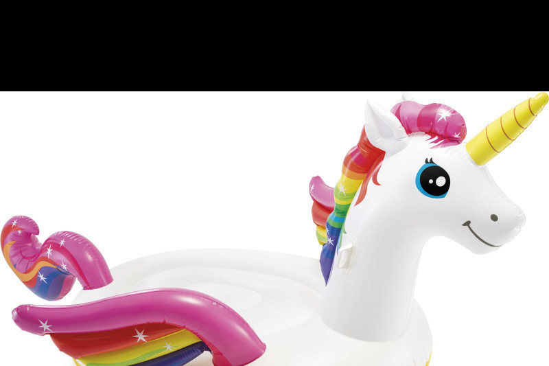A felfújható matrac kényelmes, tökéletes a pihenéshez és szórakozáshoz egyaránt. A szivárványszínű design és a díszes szárnyak gondoskodnak arról, hogy garantáltan feltűnő legyél a medencében. A matrac mérete 201 x 140 x 97 cm, így bőségesen helyet ad a kényelmes fekvéshez.