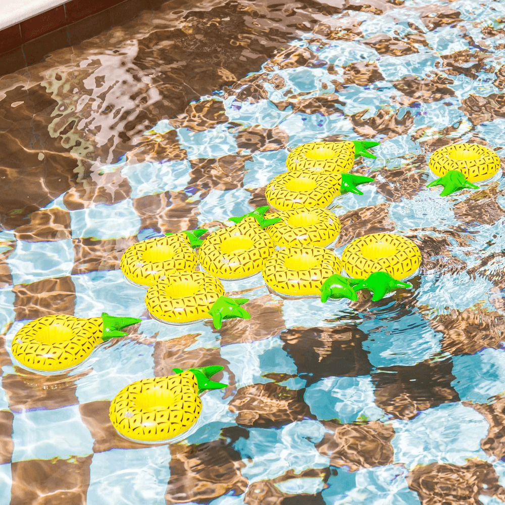 Ez a felfújható ananász italtartó nem csak kiválóan használható dekorként egy medence partin, de saját funkcióját is tökéletesen elvégzi: stabilan tartja az üdítőd melletted, így nem kell kiszállnod és megszakítanod a vízben való pihenésed. A termék egy mélyedéssel a közepén lett kialakítva, így stabilan tartja meg italodat, nem kell tartanod attól, hogy kiborul. Érdemes poharas, illetve dobozos italokat rátenni, hiszen az üveg  már lesüllyesztheti a kis ananászt, így nem tud stabilan megmaradni.