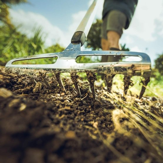 Elnyűhetetlenül tartós rozsdamentesacél-fej 10 foggal, keskenyebb helyeken, szűk ágyásokban történő gereblyézéshez és talajigazításhoz. Egyedi kialakítású edzettalumínium-nyele segít, hogy kisebb erőkifejtés mellett azonos hatékonyságot érhessünk el. Kényelmes Softgrip markolatának köszönhetően különböző munkapozíciókban használható, a praktikus és helytakarékos tárolást akasztólyuk segíti.