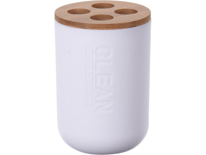Ez a fehér, műanyag fogkefetartó pohár faerezetes fa fedővel passzolni fog minden fürdőszobába! 4 db fogkefe tárolására alkalmas. Szép és praktikus kiegészítője lesz fürdőszobájának.