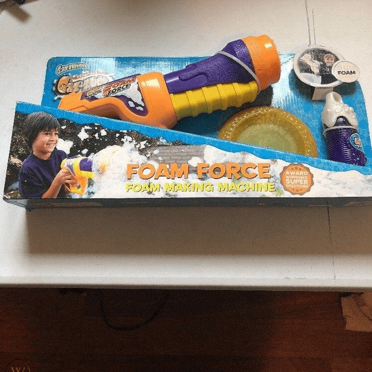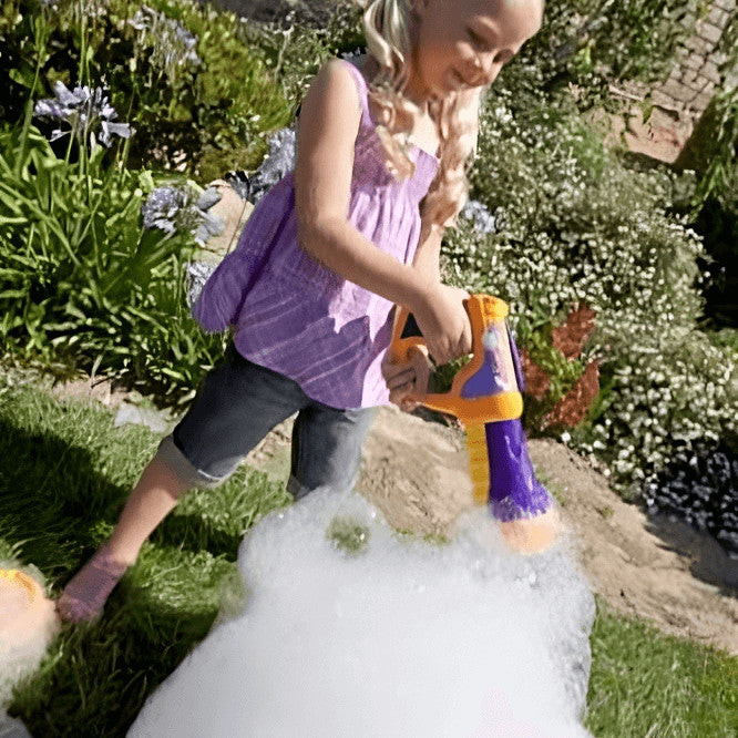 A csomagban található folyadékot felszívva a fegyver a belehelyezett (nem része) elemek segítségével készít habot. A készlet tartalma egy tál is amelybe beleöntve a flakon szappan tartalmát könnyedén fel lehet szívni a kütyüvel a folyadékot. Kiváló szórakozás nyáron, amikor a kertben könnyedén tudnak játszani a gyerekek. A játék már 3 éves kortól használható.