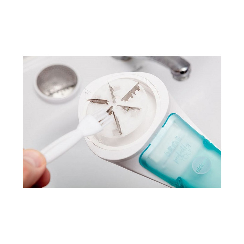A tisztítókefe segítségével könnyen tisztítható az eszköz használat után. A felesleges anyagrészecskék hagyása korlátozhatja a borotva működését és csökkentheti a használatával való elégedettséget.