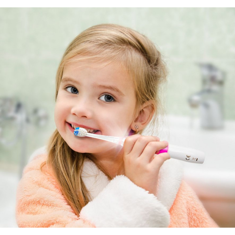 A fogkefe jelez 2 perc fogmosás végét és értesít a 30 másodperces tisztítási periódus végéről minden fogterületen, így a gyermek számára sokkal könnyebb egyenletesen fogat mosni és ellenőrizni a megfelelő időt.
