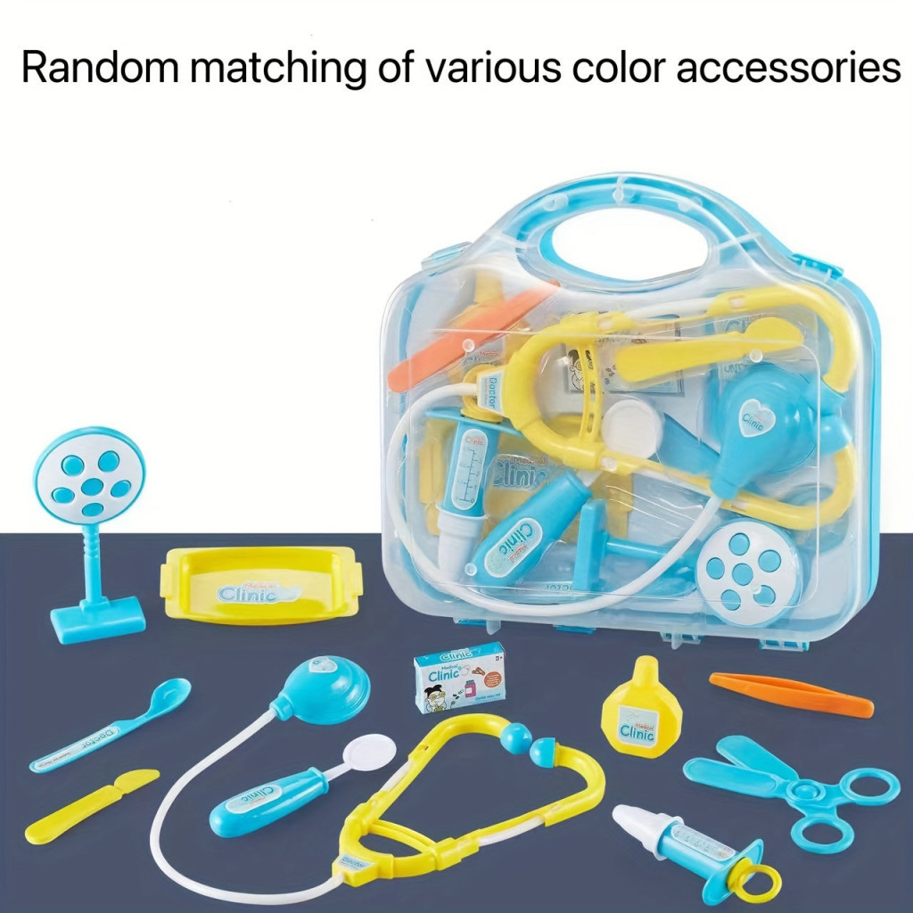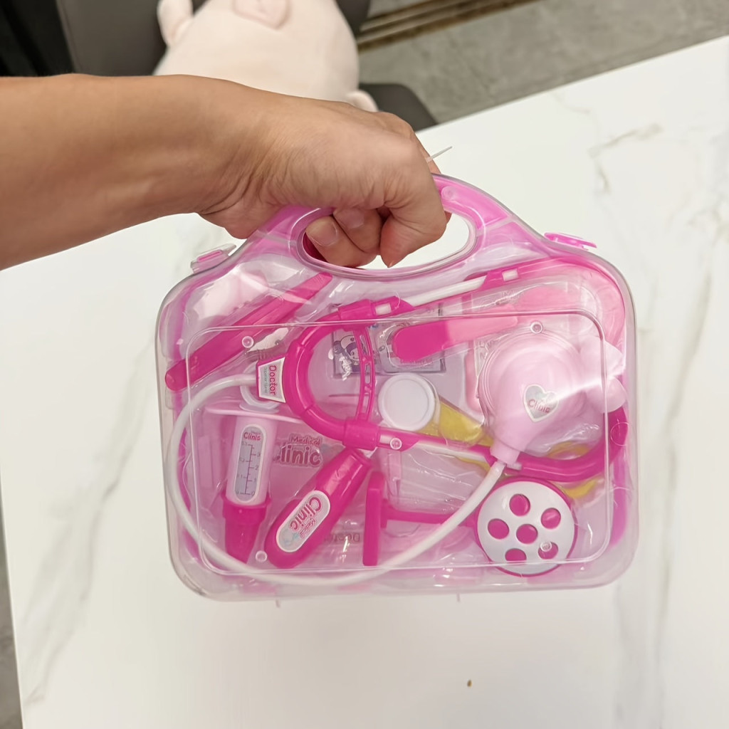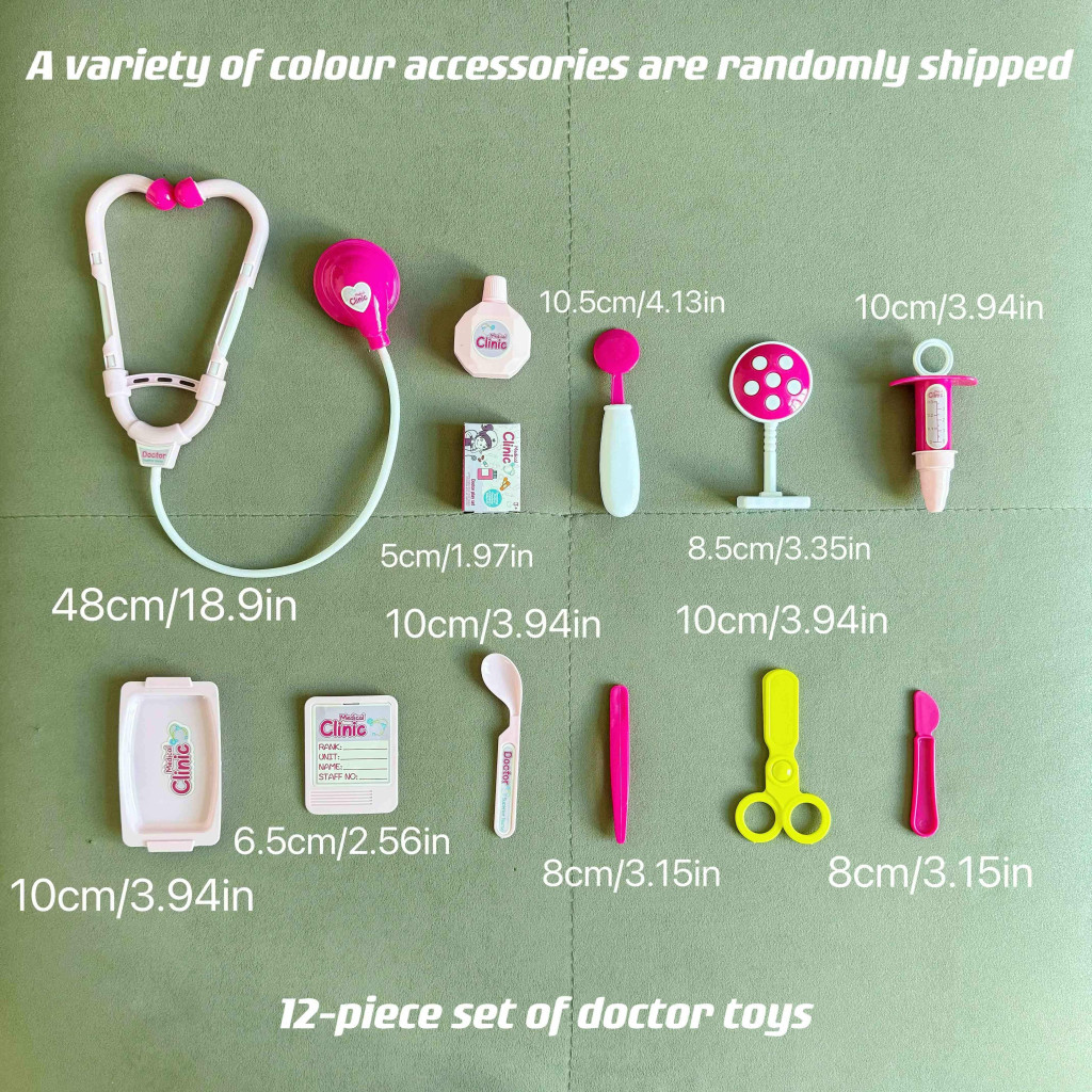 (Készlet tartalma) A készlet számos orvosi eszközt tartalmaz, mint például sztetoszkóp, hőmérő, fecskendő és még sok más, hogy a gyerekek teljes orvosi élményben részesülhessenek.