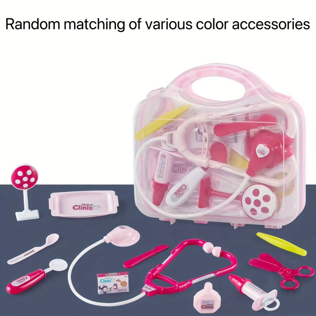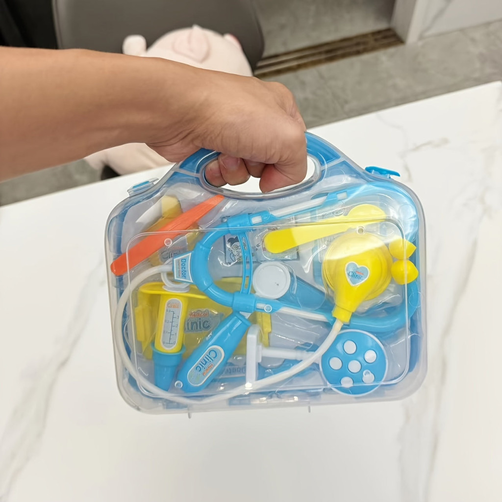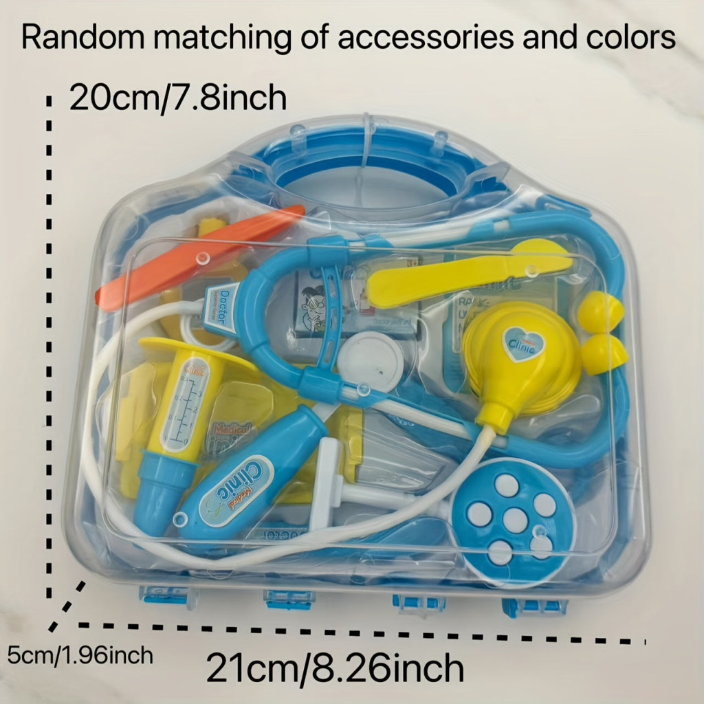 (Készlet tartalma) A készlet számos orvosi eszközt tartalmaz, mint például sztetoszkóp, hőmérő, fecskendő és még sok más, hogy a gyerekek teljes orvosi élményben részesülhessenek.