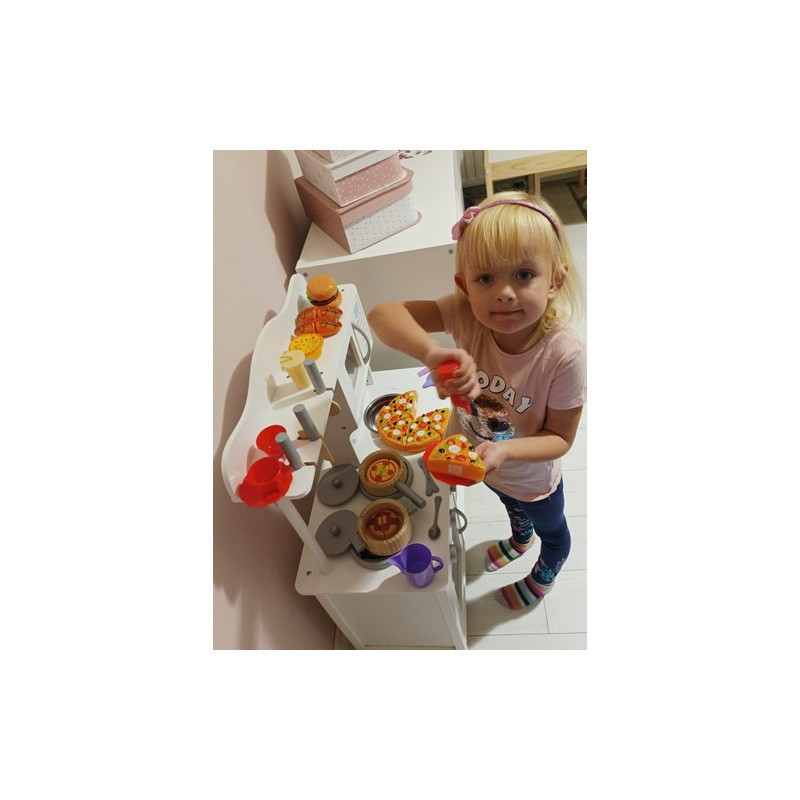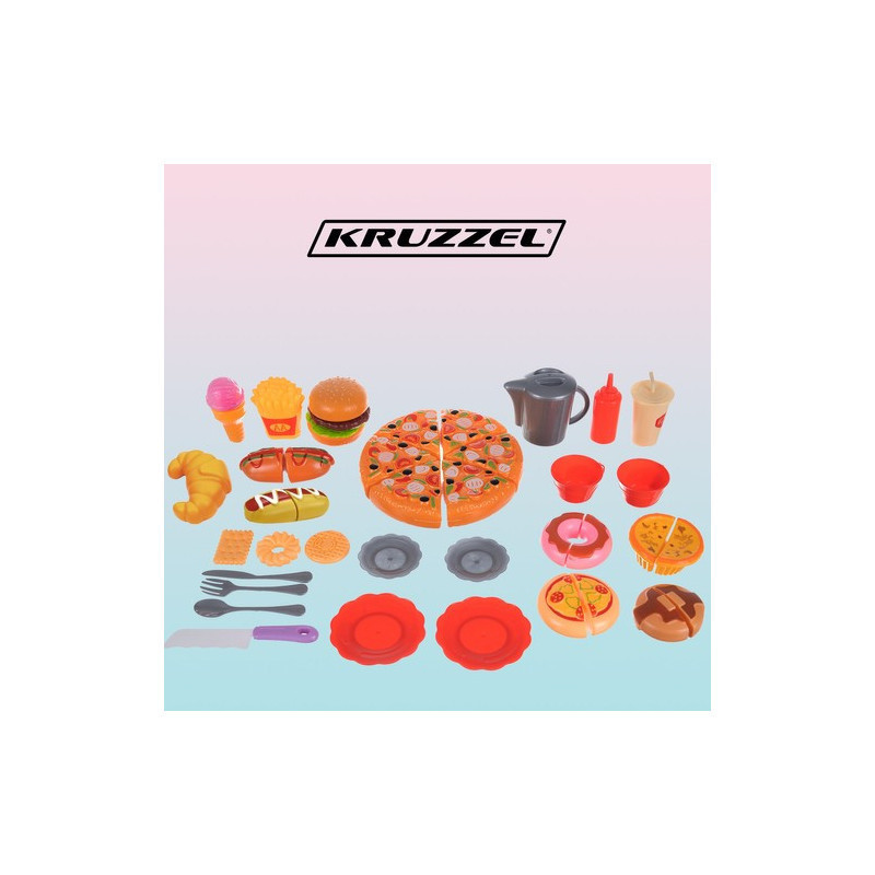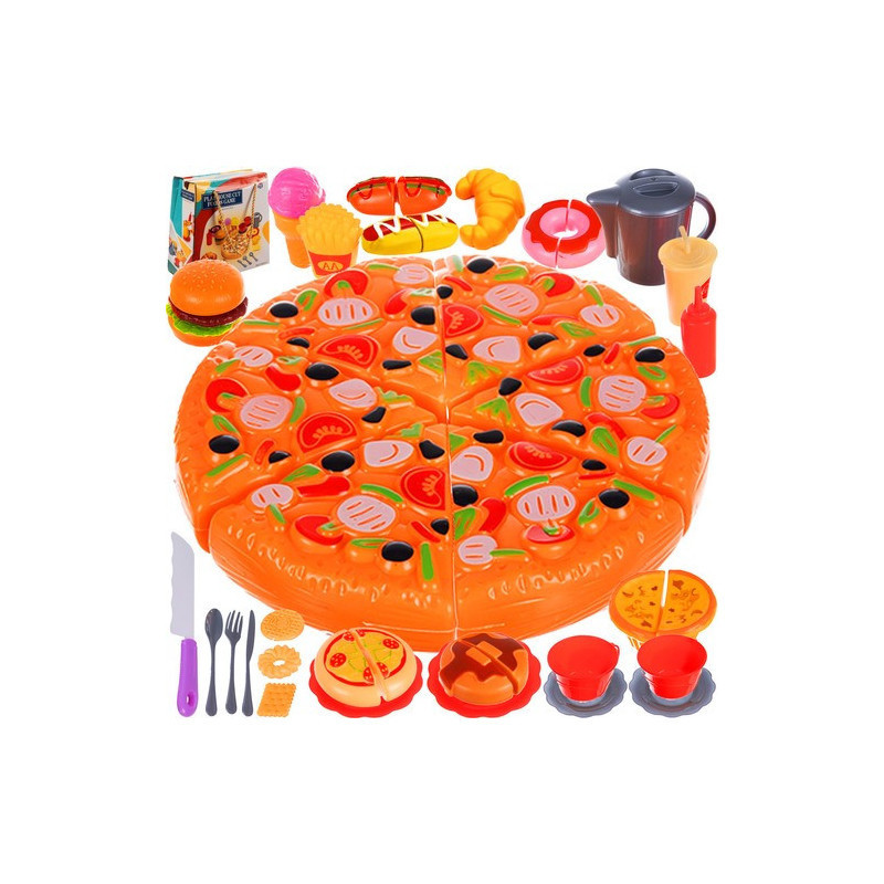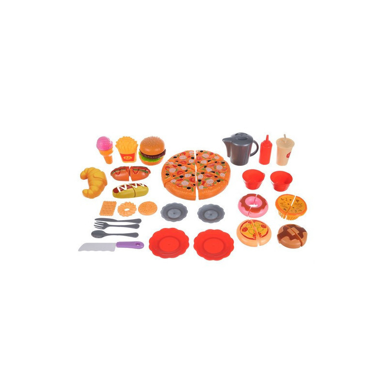 Elképzelted már, hogy egy igazi kis séf vagy? Ezzel a fantasztikus, 42 darabból álló pizza és gyorsétel játékszettel most valóra válthatod az álmod! A szett tartalmaz mindent, amire szükséged lehet: tálcát, hot dogot, pizzát, sült krumplit és még sok más finomságot.