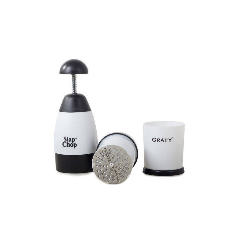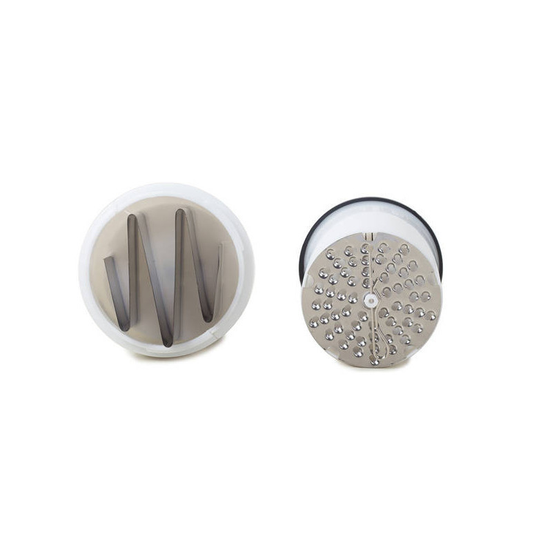 Ezenkívül a készlet tartalmaz egy sajtreszelőt is, amelynek két cserélhető darálója van. Segítségével gyorsan reszelheted a sajtot kedvenc ételébe. A reszelőt használhatod zöldségek és gyümölcsök facsarására is.