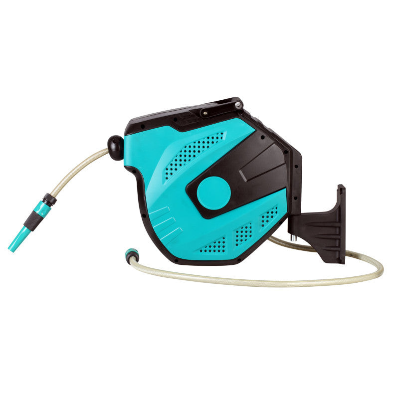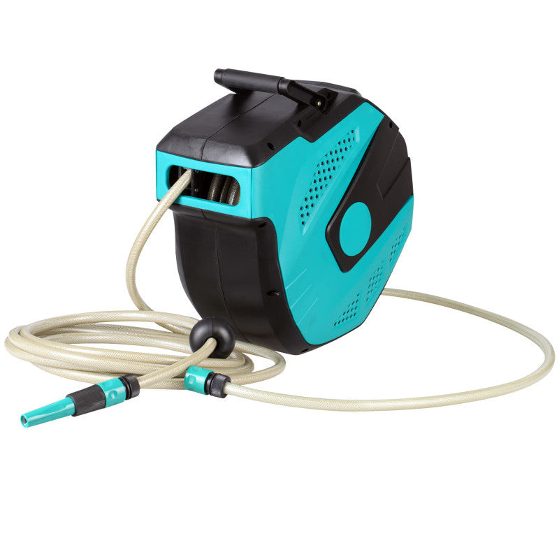 A 15 m-es automata tömlődob PP-szerelvénnyel tökéletes választás mindazok számára, akik kényelmes és megbízható módon szeretnének vízhez jutni. Ez a tömlődob kényelmes és ergonomikus kialakítású, kiváló minőségű és tartós anyagokból készült. Visszahúzható víztömlőegységgel, korszerű zárórendszerrel és prémium minőségű kézi fúvókával rendelkezik. A tömlő rövid meghúzásával a zár kioldódik, és a tömlő visszahúzódik a kannába - nincs szükség hajlításra vagy kurblizásra. Az ergonomikusan kialakított fogantyúnak köszönhetően könnyen levehető a falról, rugalmasan használható és könnyen szállítható. Ezenkívül cseppálló kialakítással, UV- és fagyvédelemmel, valamint korrózióálló egységgel rendelkezik. A mindkét irányban 180°-os elfordulással ez a tömlődob tökéletes kerti hobbikhoz, autómosáshoz, takarításhoz és sok máshoz.