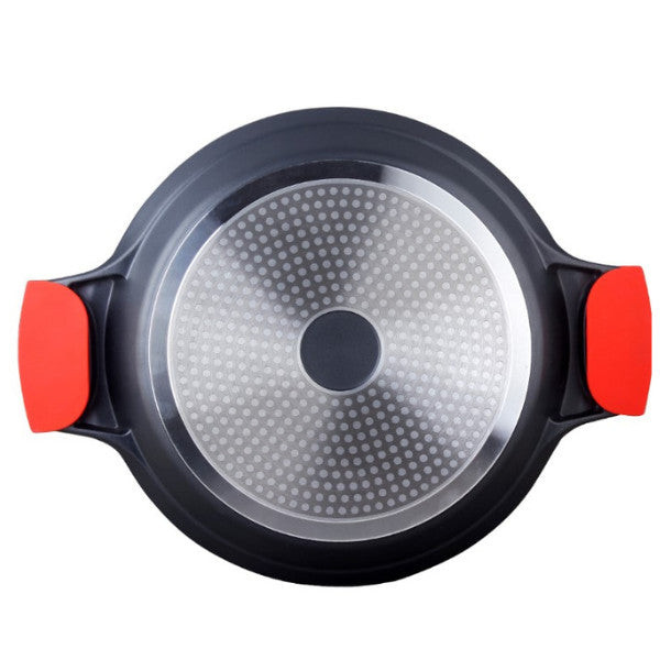 A márvány bevonat PFOA-mentes és elég kemény ahhoz, hogy elviselje a karcolásokat. Ez a serpenyő különféle hőforrásokon is használható, mint például gáz, elektromos, kerámia, tábortűz, grill és még indukciós tűzhelyen is.