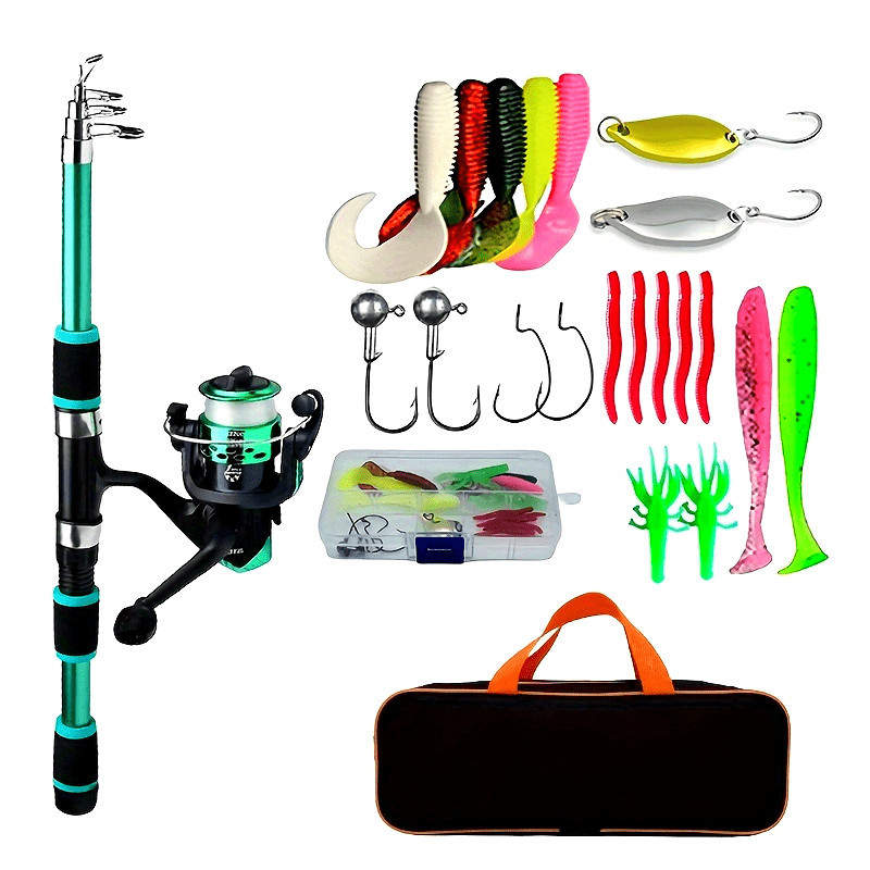 Horgászfelszerelés Szett teleszkópos horgászbottal, csalikkal, orsóval, tároló táskával