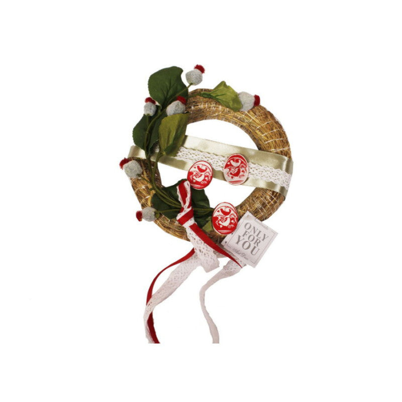 A piros tojásos húsvéti koszorú tökéletes választás a tavaszi ünnepek dekorálásához. Az ünnepi hangulatot fokozó koszorú, amely különleges díszítéssel rendelkezik, biztosan minden vendég figyelmét felkelti majd. A koszorú szép és piros tojásokkal van díszítve.