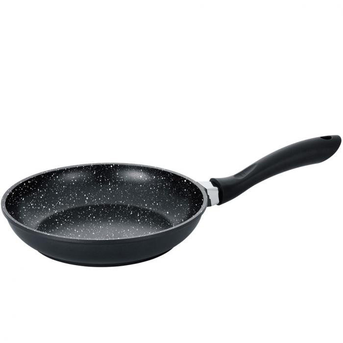 A serpenyő márvány mintával rendelkezik, vastag alumínium anyagból készült, amely megkönnyíti az étel elkészítését és tisztítását. A puha tapintású fogantyú kényelmes és biztonságos fogást biztosít, és az alumínium alapanyag egyenletes sütést eredményez. Az indukciós tűzhelyhez is használható. A PFOA-mentes bevonat biztonságos és környezetbarát.