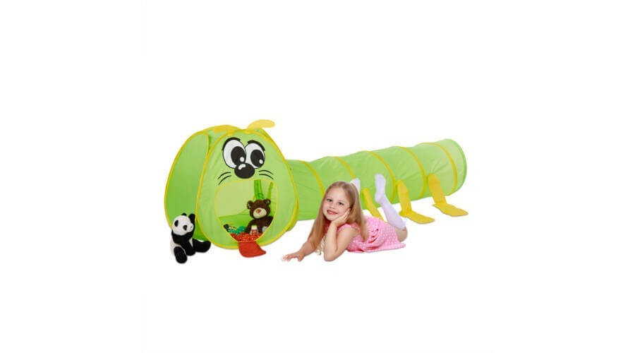 A sátor segítségével a gyermekek egy más világba kalandozhatnak. A játszósátornak különleges hernyós kialakítása van, és egy alagút is jár hozzá. Az alagútnak köszönhetően 2 bejárata van, és játék közben könnyen szemmel tarthatók a kicsik. Könnyű anyagból készült és erős merevítőkkel van ellátva. Mindkét rész szétválasztható és külön is használható.