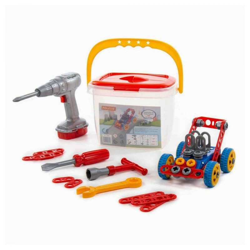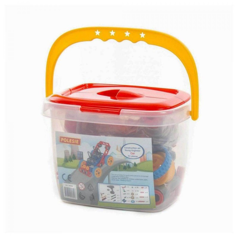 A szett lehetővé teszi, hogy gyermeked építse meg a saját játékautóját. A tájékoztató füzet mindig a segítségére lesz, ha elakadna az összeszerelés közben. A készlet egy praktikus vödörben tárolható, így bárhová magatokkal vihetitek. A szett összesen 91 darabos.