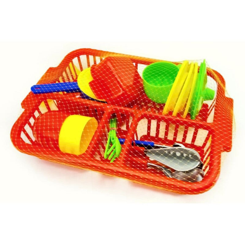Dobd fel gyermeked játék konyháját ezzel a műanyag edényszárítóval! A szettben most tányérokat, evőeszközöket és poharakat is találsz. Elengedhetetlen kellék minden kis kukta számára.