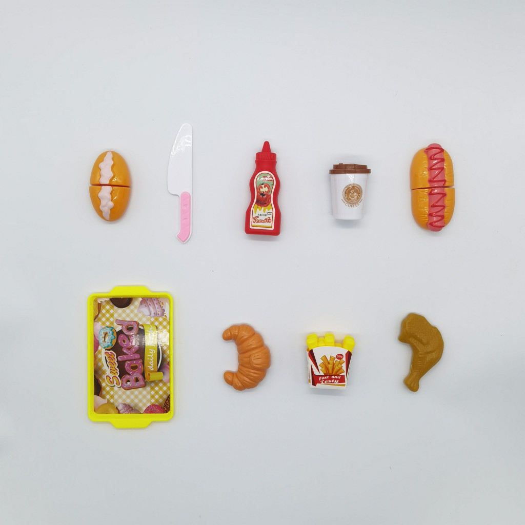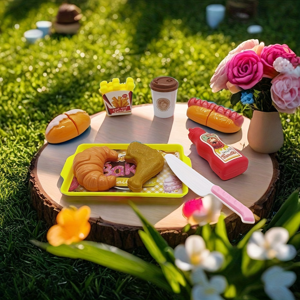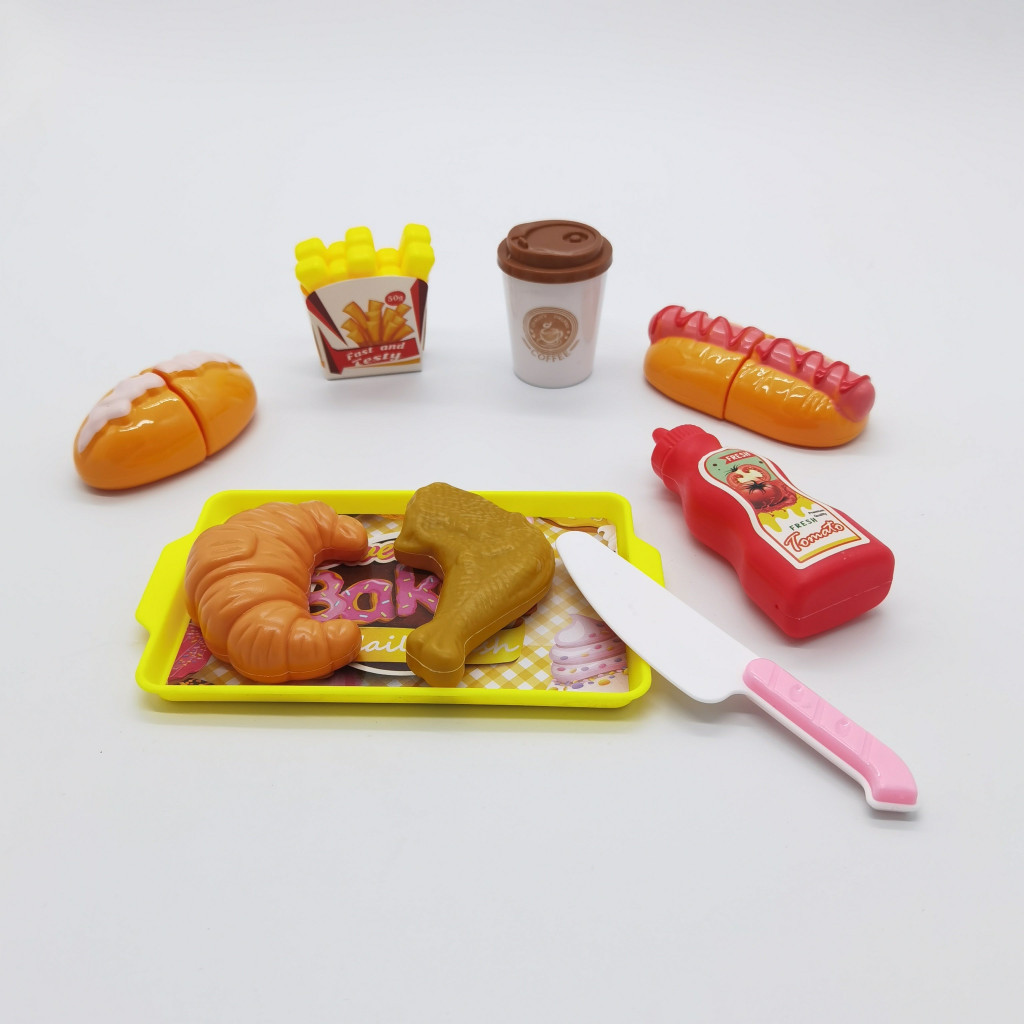 (Játékélmény) A készlet tartalmaz csirkelábakat, sült krumplit, paradicsomszószt, kenyeret és kávét, így a gyerekek különféle ételeket „készíthetnek”, fejlesztve ezzel kreativitásukat és képzelőerejüket.