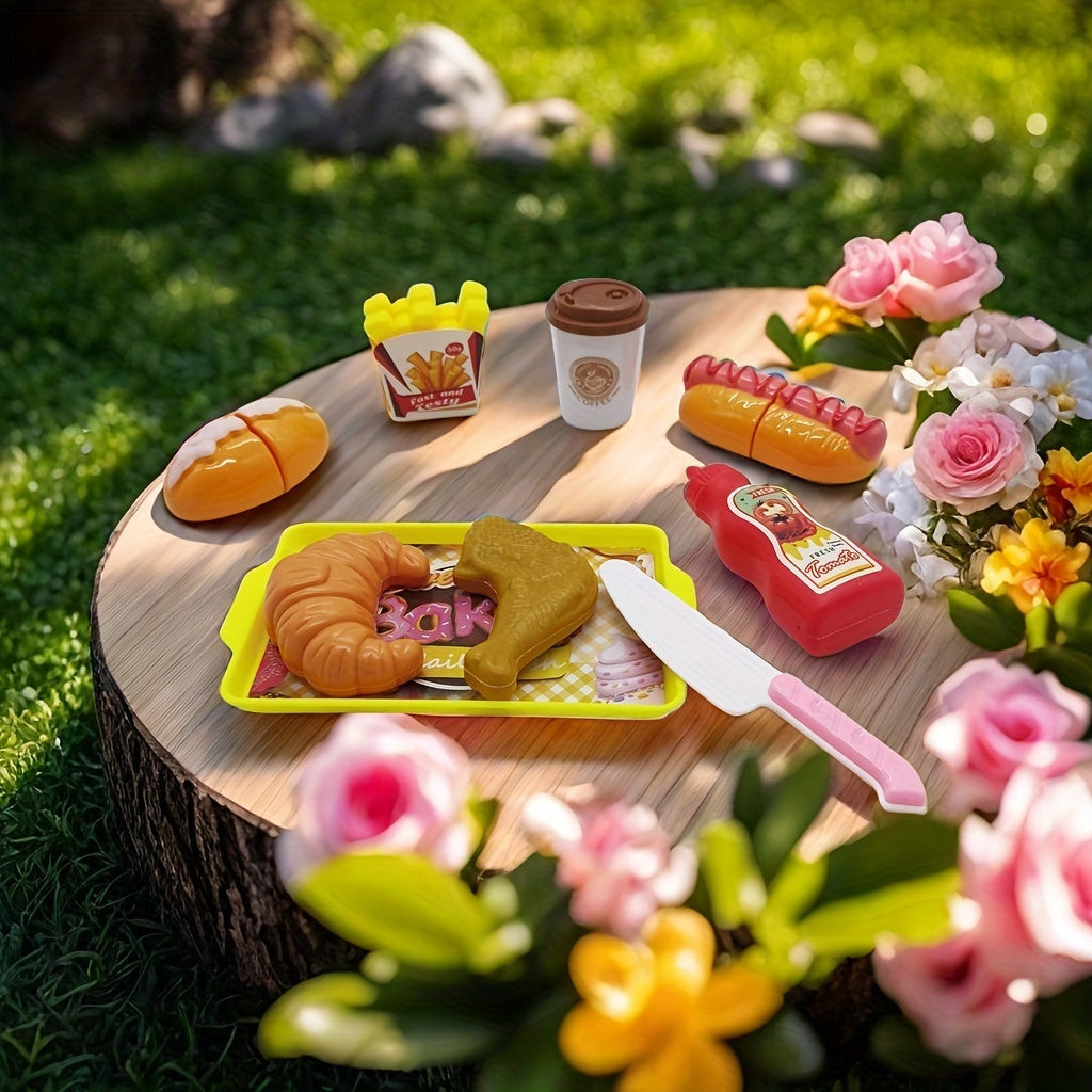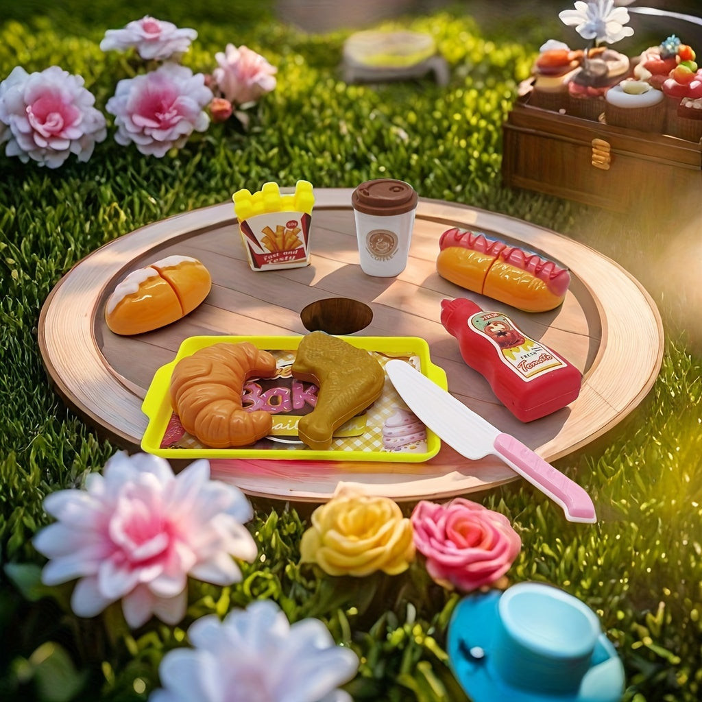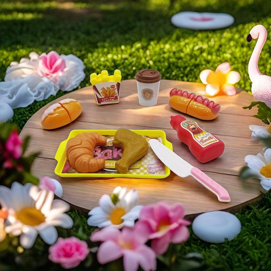 (Játékélmény) A készlet tartalmaz csirkelábakat, sült krumplit, paradicsomszószt, kenyeret és kávét, így a gyerekek különféle ételeket „készíthetnek”, fejlesztve ezzel kreativitásukat és képzelőerejüket.