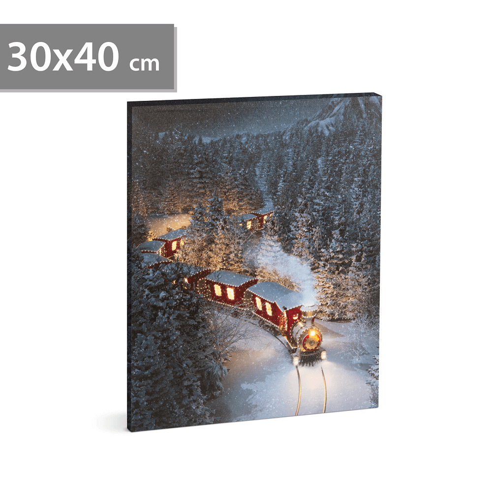 Karácsonyi vonat LED-es fali hangulatkép, 30x40 cm