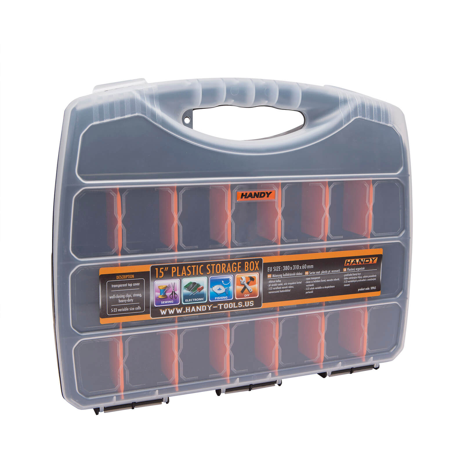 Ezzel a praktikus kelléktároló dobozzal mostantól ez gyerekjáték lesz! Több rekesszel rendelkezik, amelyek narancsszínű határolókkal vannak elválasztva, azonban ezek tetszés szerint variálhatók nagyobb, vagy kisebb rekeszre. Erős strapabíró műanyag kivitelben, hogy tartós legyen. Az átlátszó fedlap megkönnyíti, hogy hamar megtaláld amit keresel.