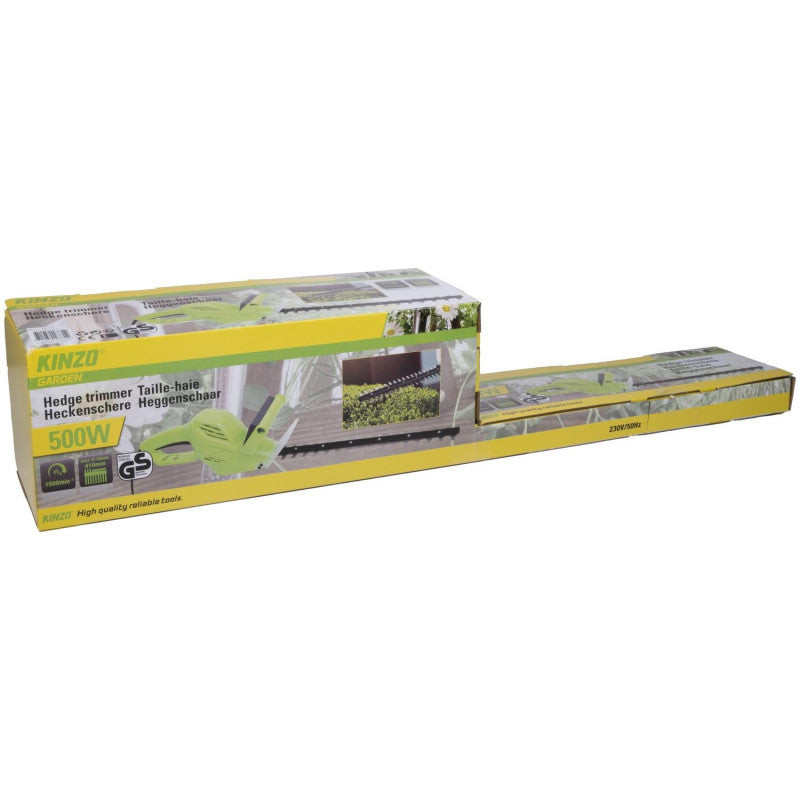 Bemutatjuk a Kinzo Garden elektromos sövénynyírót, a tökéletes eszközt a kert karbantartásához. Ezt a nagy teljesítményű elektromos sövénynyírót úgy tervezték, hogy a sövények és bokrok metszése gyerekjáték legyen. Az 500 W-os teljesítménye és az 1500 fordulat/perc sebesség könnyen, gyorsan és hatékonyan elvégzi a munkát. Ráadásul 410 mm-es pengehosszának köszönhetően egy csapással nagy területet tud lefedni. Kényelmes fogantyújával pedig órákig nyírhat fáradtság nélkül.