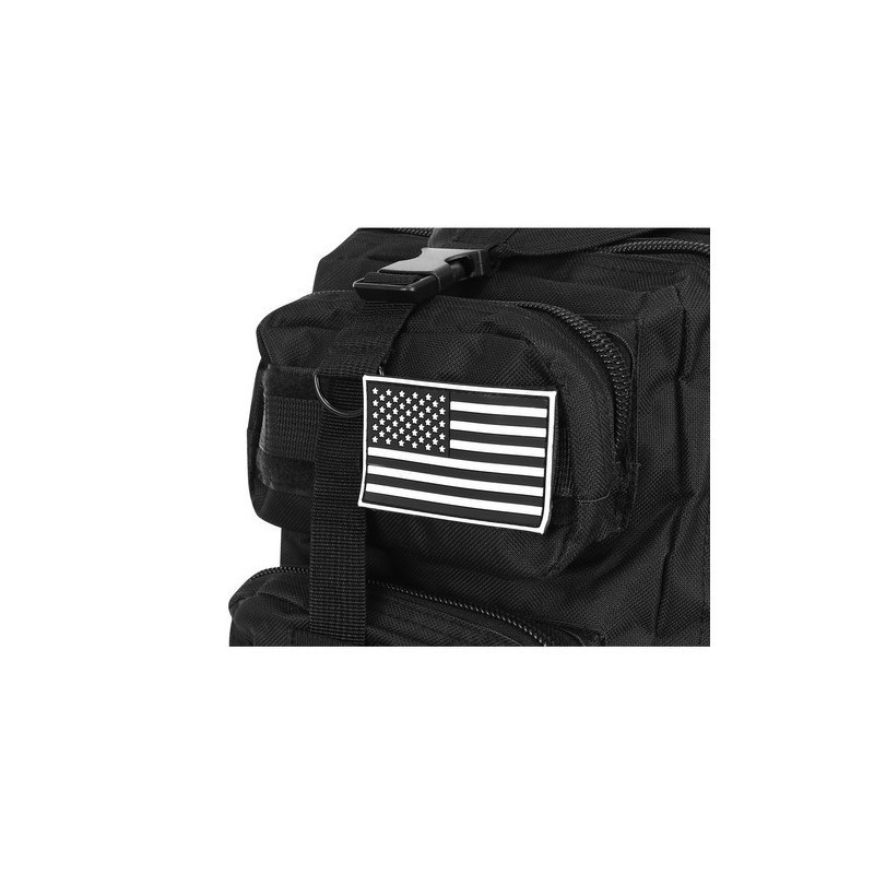 • Praktikus Kialakítás: A PALS szalagok a hátizsák elején és vállpántjain lehetővé teszik további felszerelések, zsebek rögzítését a MOLLE rendszer segítségével. A kompressziós pántokkal a hátizsák mérete könnyedén állítható, így akkor is lapos marad, ha épp nincs telepakolva.